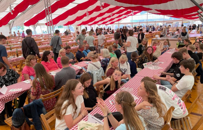 Gemeinsam marschierten wir ins Festzelt und alle freuten sich an vorab reservierten Plätzen auf ein Freigetränk, bevor es dann für die Kinder zu den Fahrgeschäften gehen konnte.