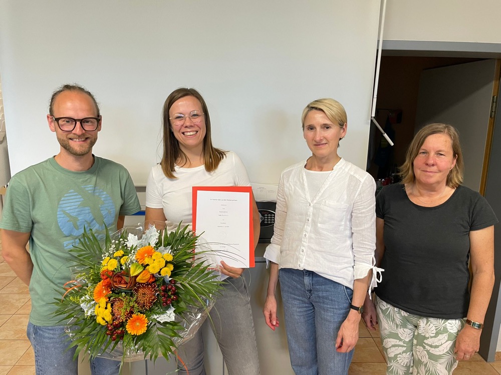 Zum neuen Job gratuliert das ganze Team der OBS. Der Personalrat überreichte einen wunderschönen Blumenstrauß und wünscht viel Freude bei den neuen Aufgaben.