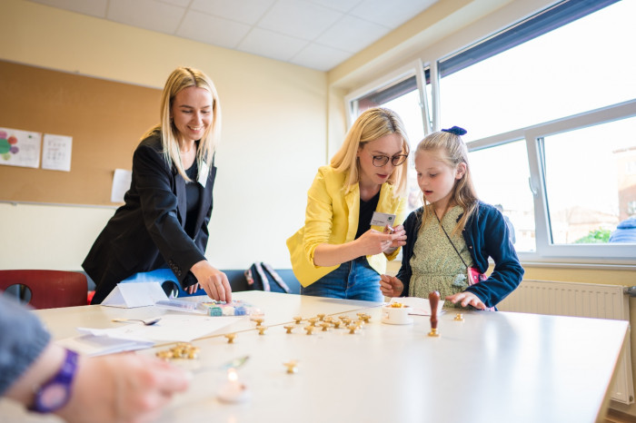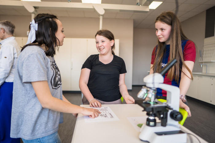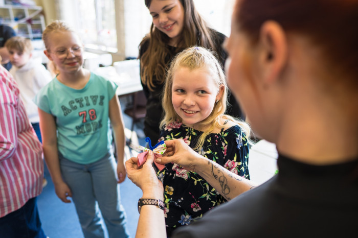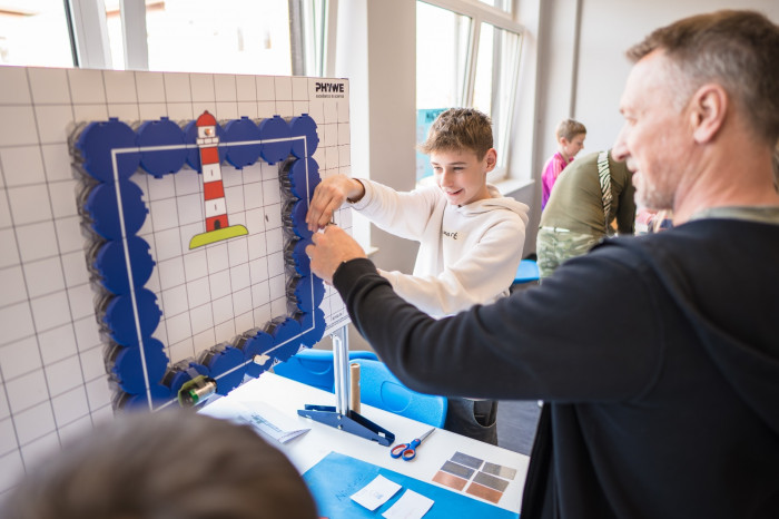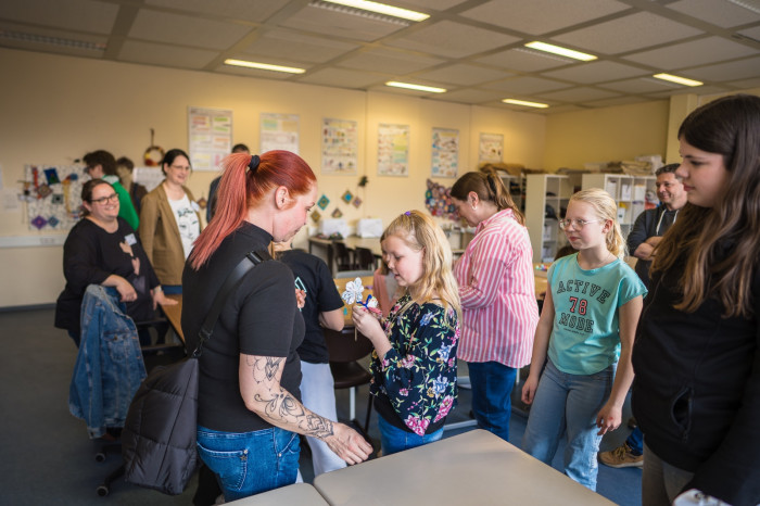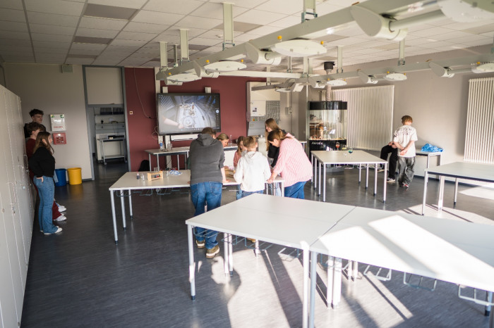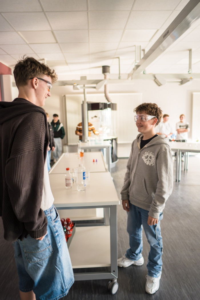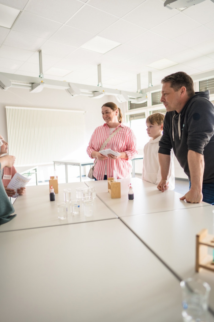 Im Angebot waren viele Mitmachaktionen der Fachbereiche sowie Führungen durch die Schule. Mit einem Laufzettel konnte die Schule erkundet werden. Besonders interessant war das Kennenlernen der neuen naturwissenschaftlichen Räume im Obergeschoss des Verwaltungstraktes.