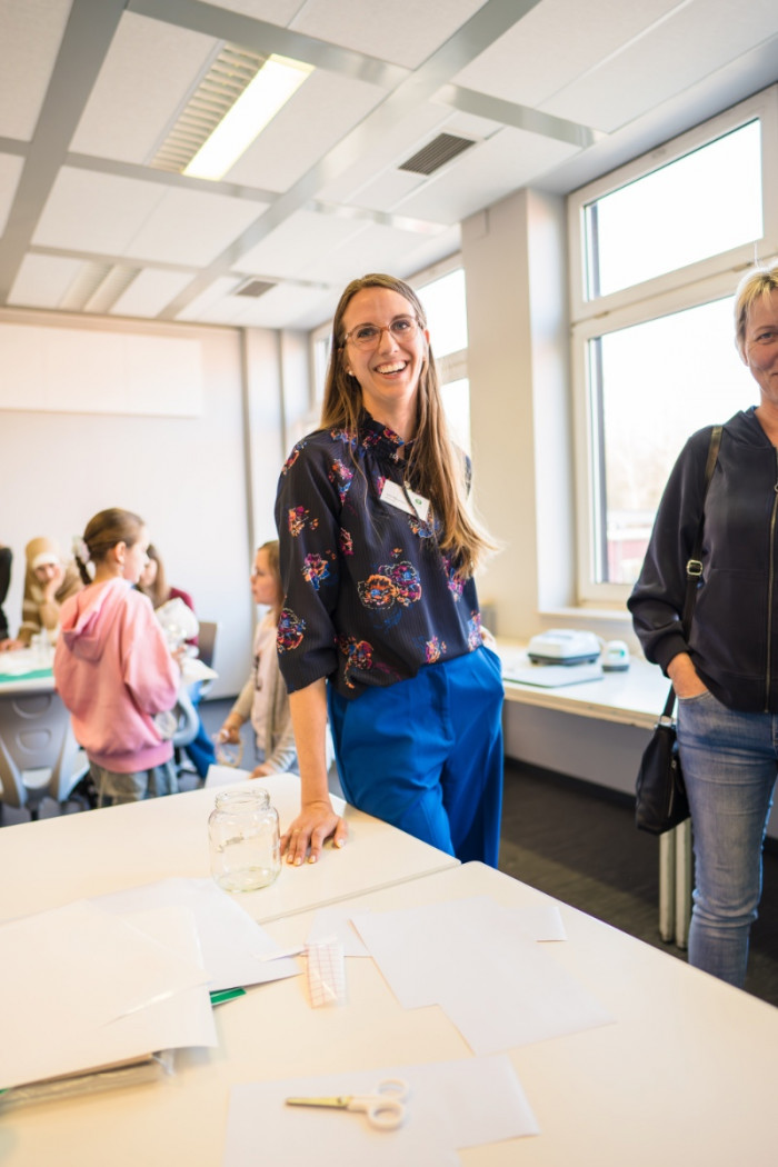 Die Fächer Chemie, Biologie, Physik, Informatik und Textiles Gestalten hatten sich hierzu mithilfe engagierter Schülerinnen und Schülern ein Programm voller spannender Experimente vorbereitet und durchgeführt. Bestens informiert wurden hier die Besucher durch unsere Schülerinnen und Schüler, die sich sehr mit ihrem Projekt identifizierten.