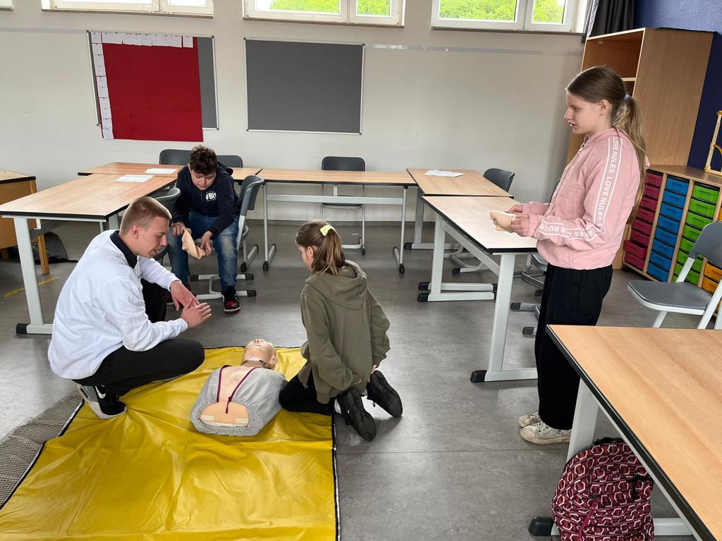 Der Malteser Hilfsdienst erklärte den Schülern wichtige Verhaltensweisen in Notfällen. Den Schülerinnen und Schülern wurden 1. Hilfe Maßnahmen beigebracht und erklärt, wie man sich in Notsituationen verhält.