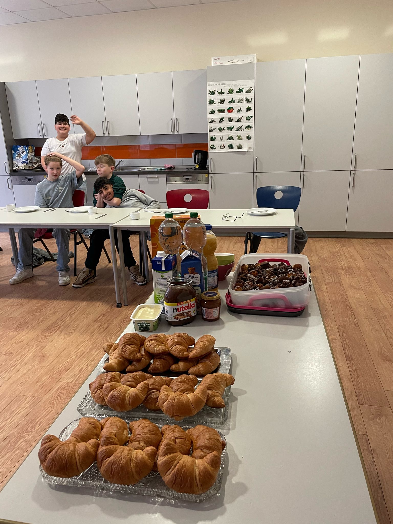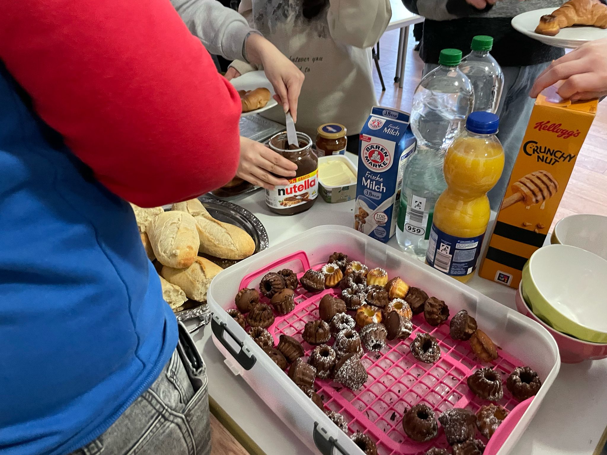 Passend zum Unterrichtsinhalt gab es ein klassisches französisches Frühstück in unserer Mensaküche für die Schülerinnen und Schüler des WPK Französisch.